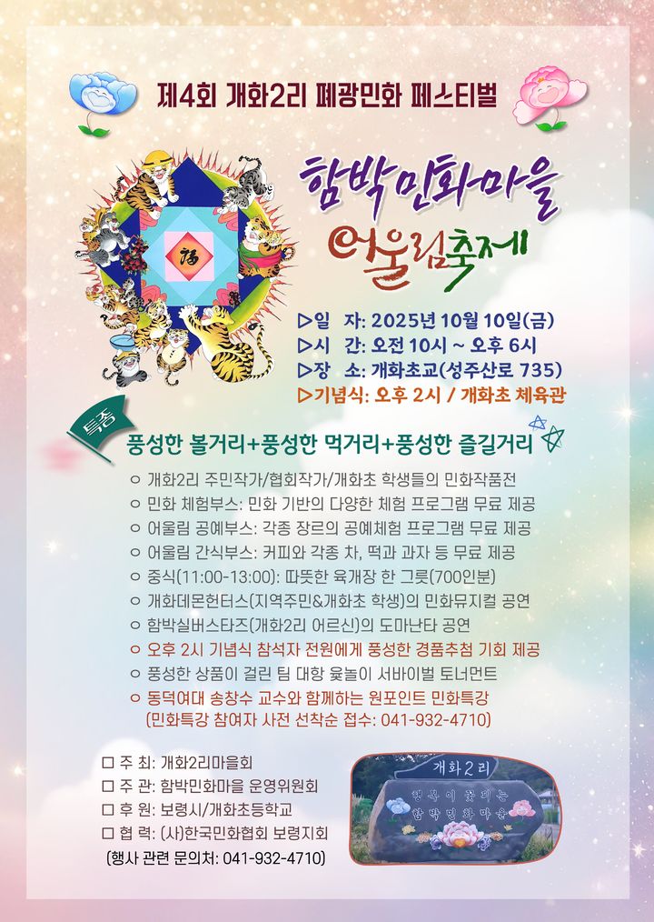 충남 보령시는 오는 10일 개화초등학교에서 ‘제4회 함박민화마을 어울림축제’가 열린다고 2일 밝혔다.
