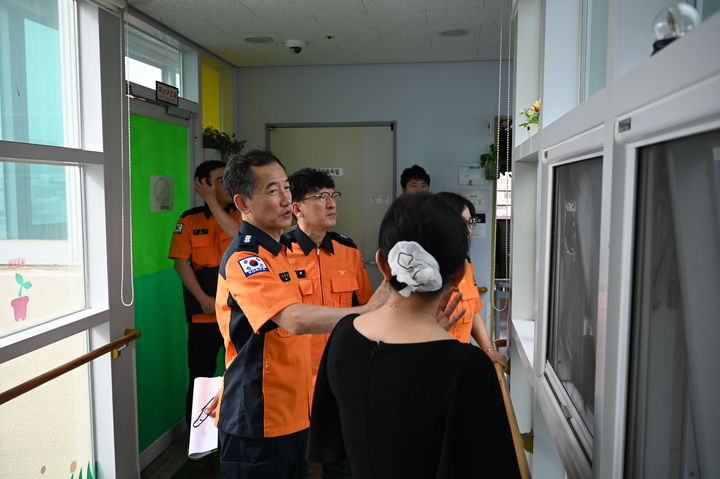 ◎공감언론 뉴시스 jjikk@newsis.com [#item_title][대구=뉴시스]정재익 기자 = 대구서부소방서는 24일 서구 당산로에 있는 민들레요양원에서 화재안전점검을 실시했다.추석 명절 노인들이 안전하게 지낼 수 있도록 화재 위험 요인을 미리 없애기 위해서다.점검 주요 내용은 ▲전기·가스·난방기구 관리 상태 ▲비상구 및 피난통로 확보 여부 ▲자동화재탐지설비 및 소방시설 정상 작동 여부 등이다.서부소방은 요양원 관계자 대상으로 화재예방 수칙 등 초기 대응 요령을 안내했다. 노인의 신속한 대피를 위한 맞춤형 안전 컨설팅도 병행했다.우병욱 서부소방서장은 “추석 연휴에는 전기 이용 부주의로 인한 화재 위험이 높다”며 “특히 노인복지시설과 같은 화재취약시설은 사전 예방이 무엇보다 중요하다”고 말했다.