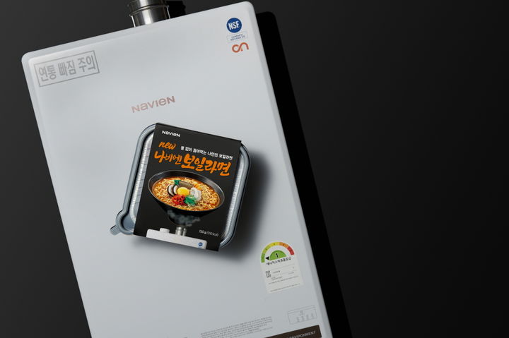 경동나비엔은 지난해 11월 콘덴싱 보일러가 선사하는 따뜻함을 재치있게 전달하고자 보일라면을 출시했다. 바깥 용기에 발열체와 물을 붓고, 내부 용기에 스프와 면, 물을 넣은 뒤 10분을 기다리면 따뜻한 라면이 완성된다.