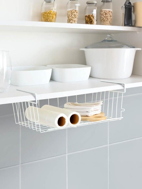 ‘쌓을 수 있는 주방걸이’는 싱크대 상부장 하단에 걸어 자투리 공간을 수납 공간으로 바꿔주며, 2단까지 결합해 공간 활용을 극대화할 수 있다.