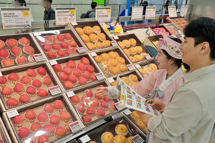 ◎공감언론 뉴시스 winjh@newsis.com [서울=뉴시스]이주혜 기자 = 추석 연휴가 열흘 앞으로 다가오면서 대형마트 업계가 명절맞이 추석 선물세트 본 판매에 돌입한다. 가성비를 앞세운 상품부터 특별한 기획 구성까지 마음을 전할 수 있는 다양한 선물세트를 마련했다.25일 유통업계에 따르면 롯데마트와 이마트는 오는 27일부터 다음 달 6일까지 추석 선물세트 본 판매를 진행한다.롯데마트·슈퍼는 본 판매 기간에 행사 카드로 구매하면 품목별 최대 30% 할인 혜택을 제공하고 구매 금액별로 최대 50만원 상당의 상품권 증정 또는 즉시 할인 프로모션을 운영한다.롯데마트는 신선식품 선물세트의 75% 이상을 롯데슈퍼와의 공동 소싱 상품으로 준비했다.통합 매입 역량을 바탕으로 대규모 물량을 확보해 원가 경쟁력을 높이고, 다양한 선물세트를 합리적인 가격에 제공하겠다는 방침이다.과일은 본 판매에서 5만원 미만 가성비 세트 구색을 약 25% 확대해 선보인다. 간편하게 들고 갈 수 있는 초저가 핸드캐리형 상품을 추가했다.대표 상품 ‘충주사과 3kg(11~12입·박스·국산)’를 2만9900원, ‘나주배(5~6입·박스·국산)’를 2만4900원에 판매한다.사전예약 인기 품목이었던 ‘충주 프레샤인 사과(17~20입·5kg내외·국산)’는 사전예약가와 동일한 4만원대 행사 가격을 유지한다.본 판매 신상품으로는 ‘AI로 선별한 머스크메론·고당도 머스크메론(각 7.2kg 이상)’ 선물세트 2종을 최종 혜택가 기준 6만9900원, 8만9900원에 선보인다.또 명절 최초로 생버섯 선물세트 2종을 선보인다. ‘생(生) 화고버섯세트(생표고 1.5kg·국산)’와 ‘참송이버섯 특 세트(1kg)’를 최종 혜택가 4만9900원에 제공한다.한우는 10만원 미만부터 60만원대까지 다양하게 선보인다. ‘한우정육세트2호(1등급 한우 국거리·불고기 각 500g*2·냉장·국내산)’는 최종 혜택가 9만9000원에 판매한다.투뿔 한우 중에서도 최고 등급만을 엄선한 ‘마블나인 구이혼합세트(1++(9)등급 한우 등심 500g*2·채끝·안심 각 400g*2·냉장·국내산)’는 엘포인트 회원에게 5만원 할인해 69만9000원이다.이마트도 본 판매 기간 행사카드를 통한 최대 50% 할인 혜택과 함께 결제 금액대별 신세계상품권 최대 50만원을 증정한다.축산 선물세트에서는 10만원대 초반의 본 판매 전용 한우 세트를 20% 할인가에 선보인다.’피코크 한우갈비 등심세트(등심 500g, 한우 갈비 800g, 양념소스)’를 행사가 11만400원에, ‘피코크 한우 갈비세트 3호(갈비 800g*2, 양념소스)’를 11만2000원에 판매한다.’조선호텔 와규 프리미엄 세트(호주산 와규 2.4kg)’는 기존 사전예약 기간 행사카드 결제 시 20% 할인에서 본 판매 기간 30% 할인으로 혜택을 확대해 행사가 14만7000원에 구매 가능하다.수산 선물세트는 본 판매에서도 사전예약 혜택가를 66개 전 품목 유지한다.주류 선물세트는 고객 맞춤형 가격대로 특별 기획했다. 이마트 단독으로 전용잔을 함께 증정하는 ‘글렌알라키 12년(700㎖, 영국)’을 9만6800원에, ‘케이머스 카버네 소비뇽 2022(750㎖, 미국)’를 14만8000원에 판매한다.트레이더스도 추석 당일까지 다양한 선물세트를 신세계포인트 적립 시 최대 50% 할인한다.호주·미국산 LA식 꽃갈비, 프리미엄 사과·배 혼합세트, 통보리 부세굴비 세트, 조니워커블루(750㎖) 등을 혜택가에 선보인다.이마트 에브리데이 또한 추석 당일까지 행사카드 결제 시 최대 50% 할인에 더해 결제 금액대별 최대 80만원의 상품권을 증정한다.이마트 선물세트는 SSG닷컴 이마트몰에서도 대부분 구매 가능하다.
