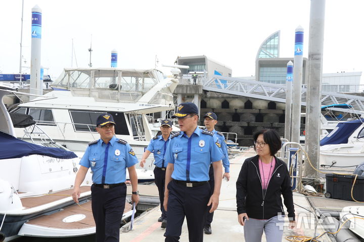 [평택=뉴시스] 정숭환 기자 = 김용진 해양경찰청장이 30일 오후 대부파출소 및 전곡항 수상레저사업장을 방문해 추석연휴 해양안전 관리 실태를 점검했다.