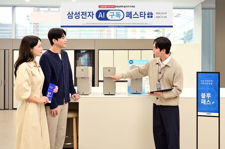 ◎공감언론 뉴시스 lovelypsyche@newsis.com [서울=뉴시스]이현주 기자 = 삼성전자가 최신 가전 제품을 구독할 수 있는 ‘AI 구독 페스타’를 다음달 30일까지 진행한다고 1일 밝혔다. 행사 기간 동안 제품과 구독케어를 함께 이용할 수 있는 ‘AI 올인원 2.0’ 요금제 신규 고객에게 총 구독 금액의 최대 8%를 삼성전자 멤버십 포인트로 제공한다.또 일부 모델을 ‘AI 올인원 2.0’ 요금제’로 구독하면 첫 달 구독료 금액 수준의 멤버십 포인트를 적립해주는 이벤트도 진행한다.2개 이상의 품목을 구매하는 고객에게 제공하는 혜택도 강화했다.해당 요금제로 ‘AI 패키지’ 제품 2개 이상 구독 가입 시 품목당 최대 5만 상당의 멤버십 포인트를 받을 수 있는 기존 혜택에 더해 품목당 3만 포인트를 추가로 제공한다.필터 교체와 내부 청소 등 주기적 방문 케어 서비스로 구독 수요가 높은 정수기 구매 고객에게는 15만 포인트를 추가 증정한다.또 ‘으뜸효율 가전제품 환급 사업’에 해당되는 제품을 구독으로 구매하면 인당 최대 30만원까지 정부 환급 10%를 동시에 받을 수 있다.한편 ‘AI 올인원 2.0’ 요금제 가입 구독 고객에게 제공되는 전용 케어 서비스 ‘블루패스’도 편의성을 강화했다.원하는 배송 날짜와 시간대를 선택할 수 있는 ‘시간 맞춤 설치’, 당일 오전 주문 후 당일 배송 받을 수 있는 ‘오늘 보장 설치’도 이달부터 이용할 수 있다.이외에도 ▲제품 고장 시 신속하게 방문∙점검을 받을 수 있는 ‘A/S 패스트트랙’ ▲스마트싱스 세팅 ▲AI 사전케어 알림 ▲하나 더 서비스 등을 이용 가능하다.