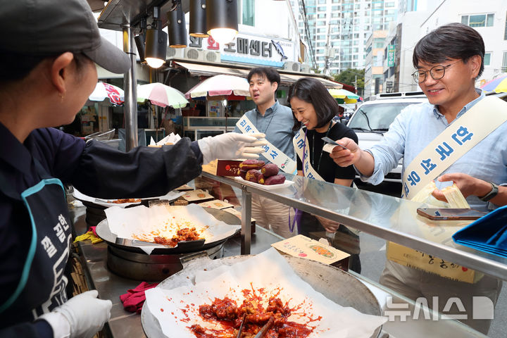 [세종=뉴시스]김동현 기자 = 한국석유공사는 지난 29일 울산 본사 인근 태화시장에서 추석 명절맞이 전통시장 활성화를 위한 ‘고 그린 고 마켓(Go Green, Go Market)’ 캠페인을 실시했다고 30일 밝혔다.