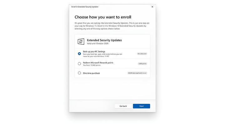 개인 사용자는 ▲윈도 백업을 통한 설정 클라우드 동기화(추가 비용 없음) ▲MS 리워드 포인트 1000점 사용(추가 비용 없음) ▲유료 결제(한화 3만7900원) 중 하나를 선택할 수 있다. 등록 기간은 오는 15일부터 내년 10월 13일까지다.