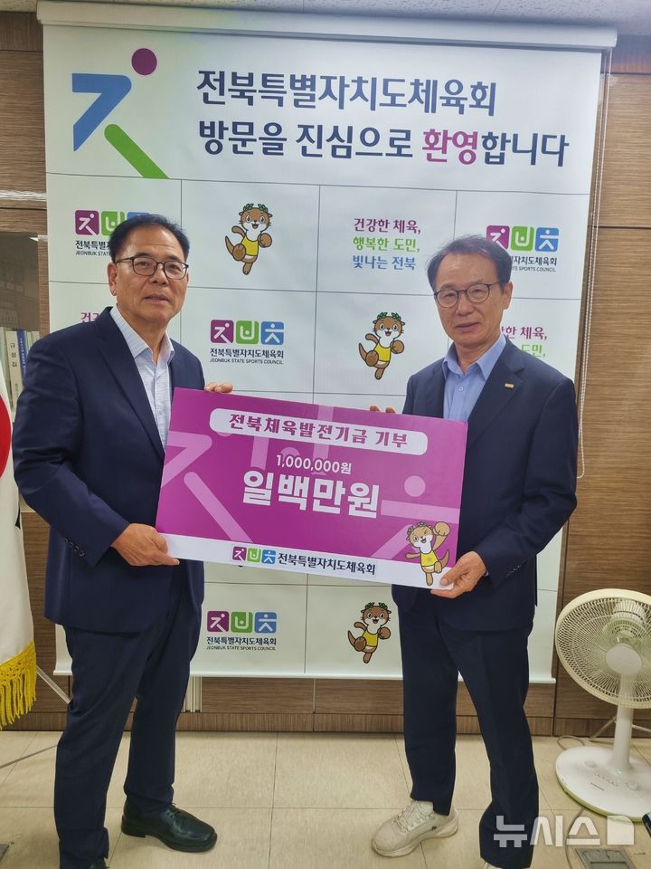 [전주=뉴시스] 김민수 기자 = 전북유도회 자문위원인 정종열 전 전주 대정초등학교 교장이 100만원의 체육발전기금을 전북특별자치도체육회에 전달했다.