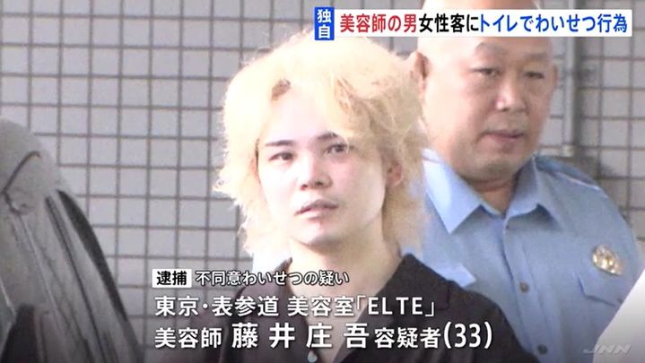 30일 일본 TBS뉴스에 따르면 도쿄 경시청은 미용사 후지이 쇼고(33)를 비동의 외설(강제추행) 혐의로 체포했다.