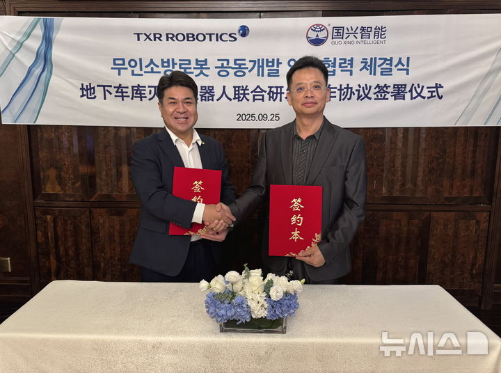 ◎공감언론 뉴시스 sky0322@newsis.com [서울=뉴시스] 박성환 기자 = 유진그룹 계열 로봇·물류 자동화 전문기업 티엑스알로보틱스가 중국 소방로봇 전문기업 궈싱즈넝(国兴智能·GuoXing Intelligent)과 ‘무인 소방로봇 공동개발 및 상업화를 위한 업무협력’ 협약을 체결했다고 30일 밝혔다.이번 협약식은 지난 25일 중국 상하이 페어몬트 피스 호텔에서 진행됐다. 티엑스알로보틱스의 엄인섭 대표와 궈싱즈넝의 바오밍송(Bao MingSong) CEO 등 양사 관계자들이 참석했다.이번 협력의 핵심은 양사가 보유한 기술과 생산 역량을 결합해 이미 개발된 무인 소방로봇의 양산 체계 구축과 시장 진출을 가속화하는 것이다. 티엑스알로보틱스는 AI 기반 통합 관제 시스템, RCS(Robot Control System) 기반 원격 제어 기술, 자율주행 알고리즘 등 핵심 소프트웨어를 제공하며, 궈싱즈넝은 로봇 본체, 소화 장비, 구동 장치 등 하드웨어 제조와 중국 내 생산 인프라를 담당한다.해당 소방로봇은 현재 개발의 파이널 단계에 있다. 지난 5월 대구 엑스코에서 열린 2025 국제소방안전박람회에서 프로토타입을 국내 최초로 공개했다. 이어 지난 17일 개최된 2025 소방방재기술산업전(FIRE TECH KOREA)에서는 시제품 시연 영상을 선보이며 업계의 주목을 받았다.상업화가 추진되는 무인 소방로봇은 AI 시스템과 연동돼 불꽃·연기·열을 감지하면 즉시 현장에 투입된다. 최대 40㎏의 전기차 화재 진압용 소화분말 탑재가 가능하고, 소화수와 연계해 폼·물 방식 진압도 지원한다. 또 최대 1㎞ 원격 조정과 자율주행 기능을 갖춰 소방관이 안전하게 후속 진압에 집중할 수 있도록 지원한다.엄인섭 티엑스알로보틱스 대표는 “이번 협력을 통해 당사의 AI 소프트웨어 기술과 궈싱즈넝의 제조 역량을 결합, 무인 소방로봇 상업화를 본격화하겠다”며 “특히 전기차 시장 확대에 따라 증가하는 화재 위험에 대응하는 글로벌 안전 솔루션 공급사로 도약하겠다”고 포부를 밝혔다.티엑스알로보틱스는 연말부터 민간과 관계 기관을 대상으로 무인 소방로봇의 제한적 도입과 시범 운용을 시작하고, 이후 본격적인 상용화를 추진할 예정이다.