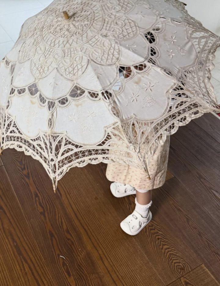 사진에는 이민정 부부의 딸 서이 양이 우산을 들고 있는 모습이 담겼다.